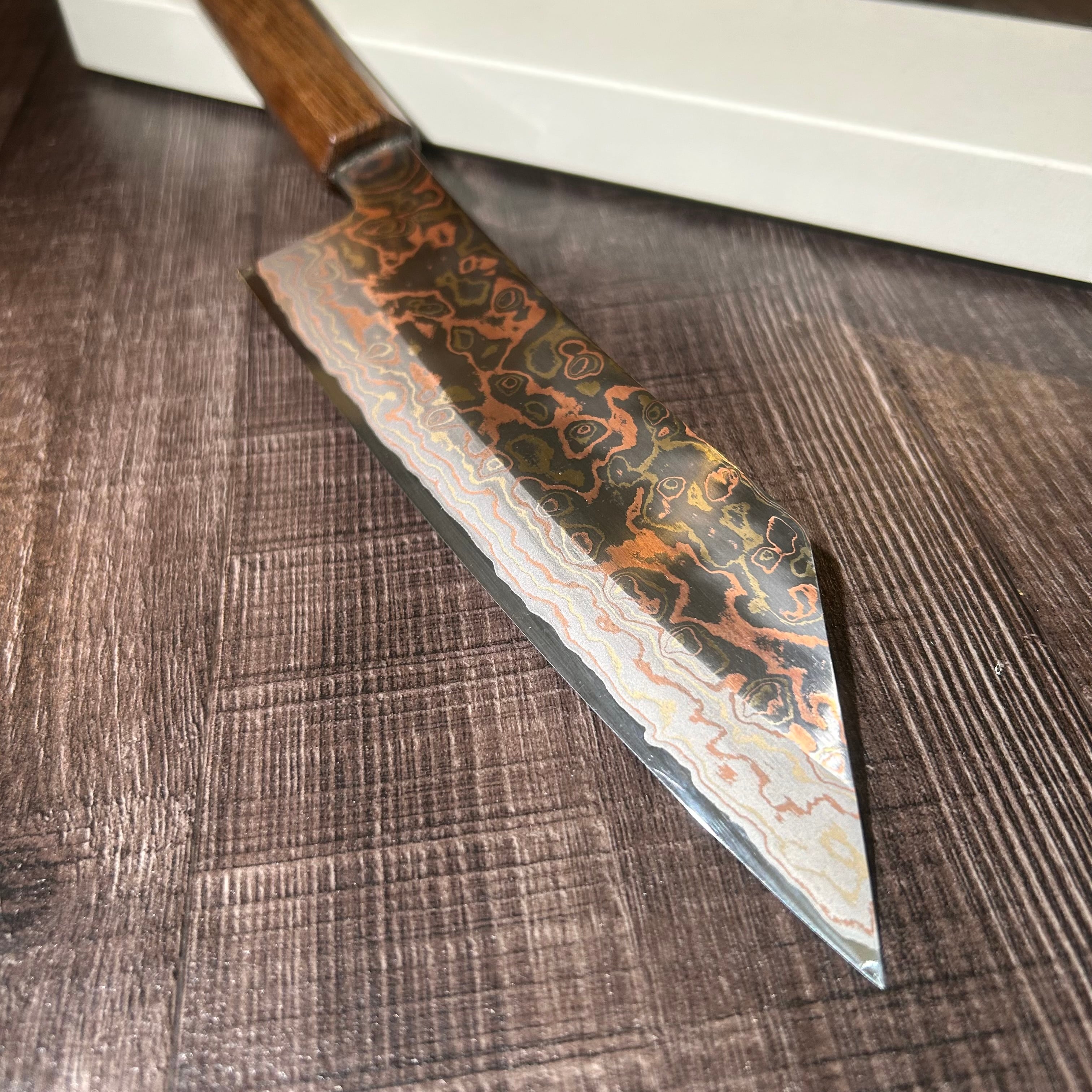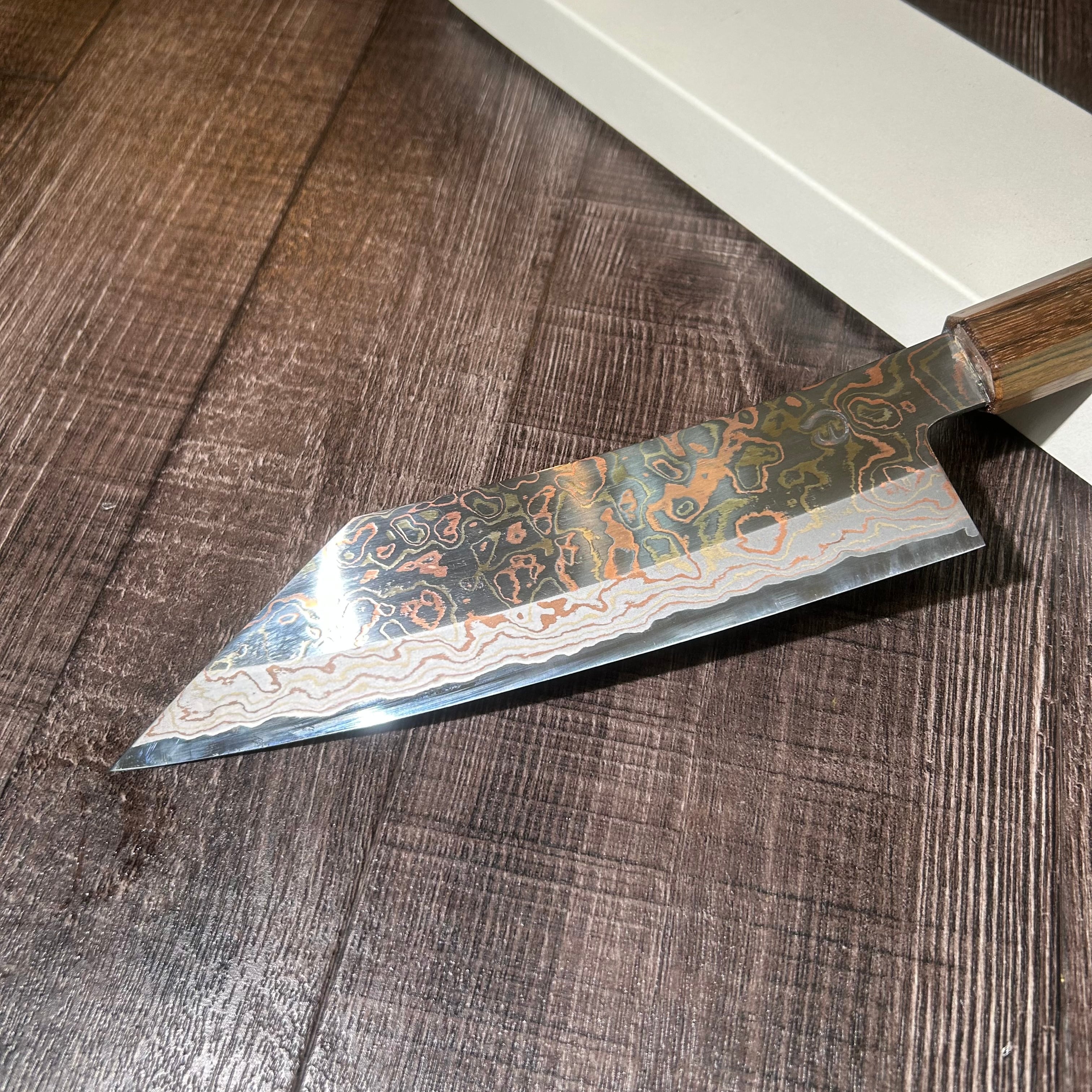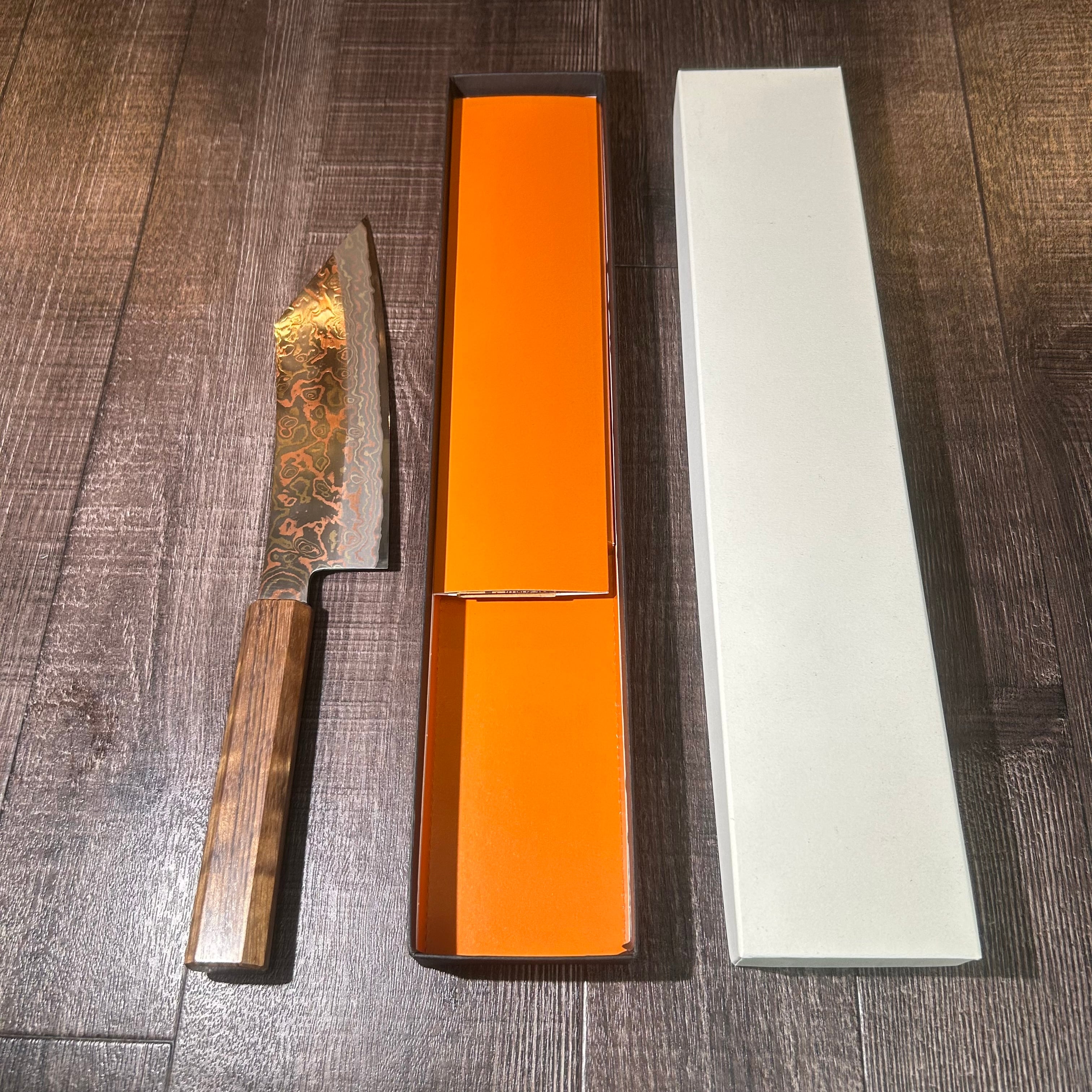 " Mutsumi Hinoura" Hakata Knife 180mm V-toku#2 Rainbow Damascus Villian Wood Handle