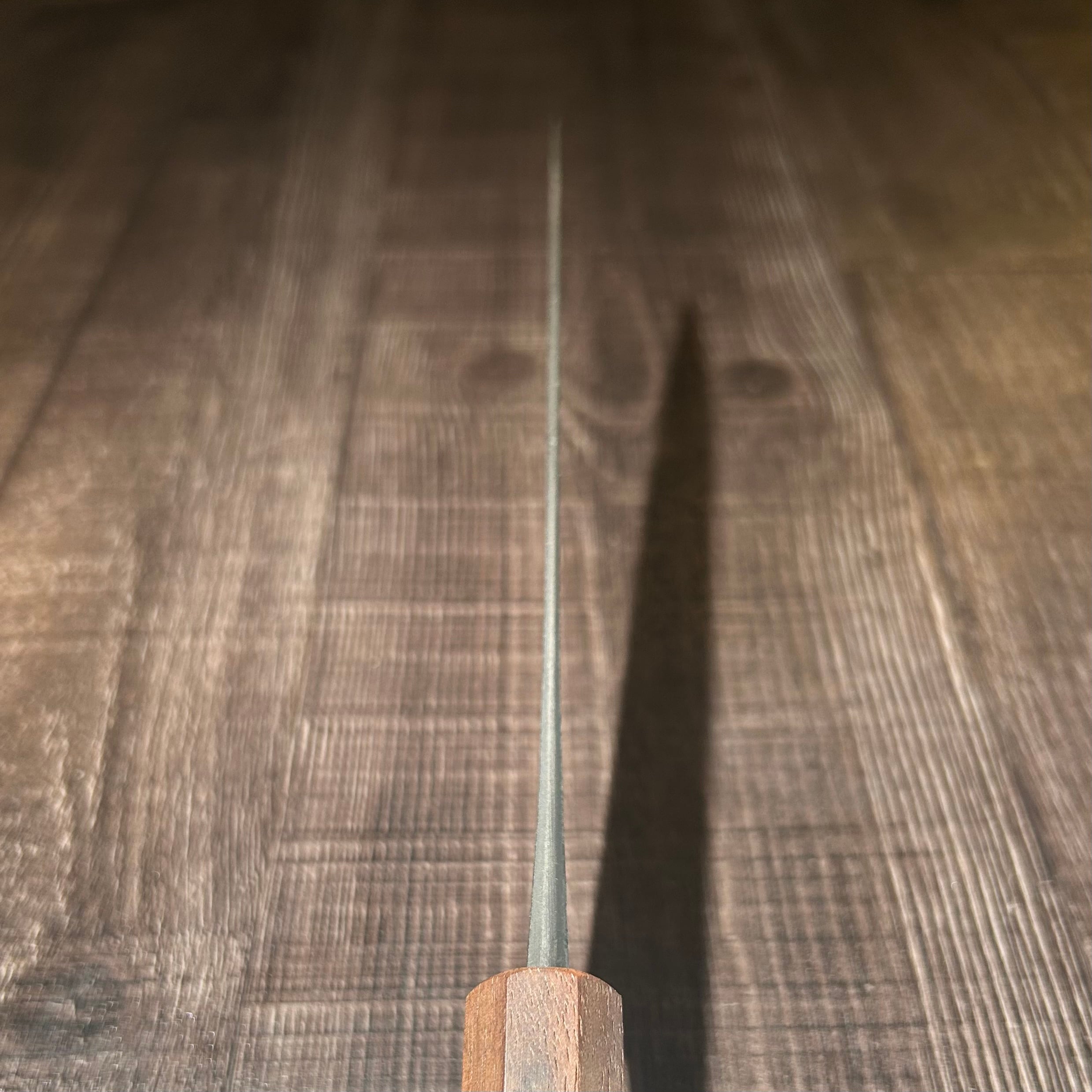 This results in an exceptional level of hardness, even with White #2 steel, reaching HRC63, making it both exceptionally hard and easy to sharpen with a whetstone.