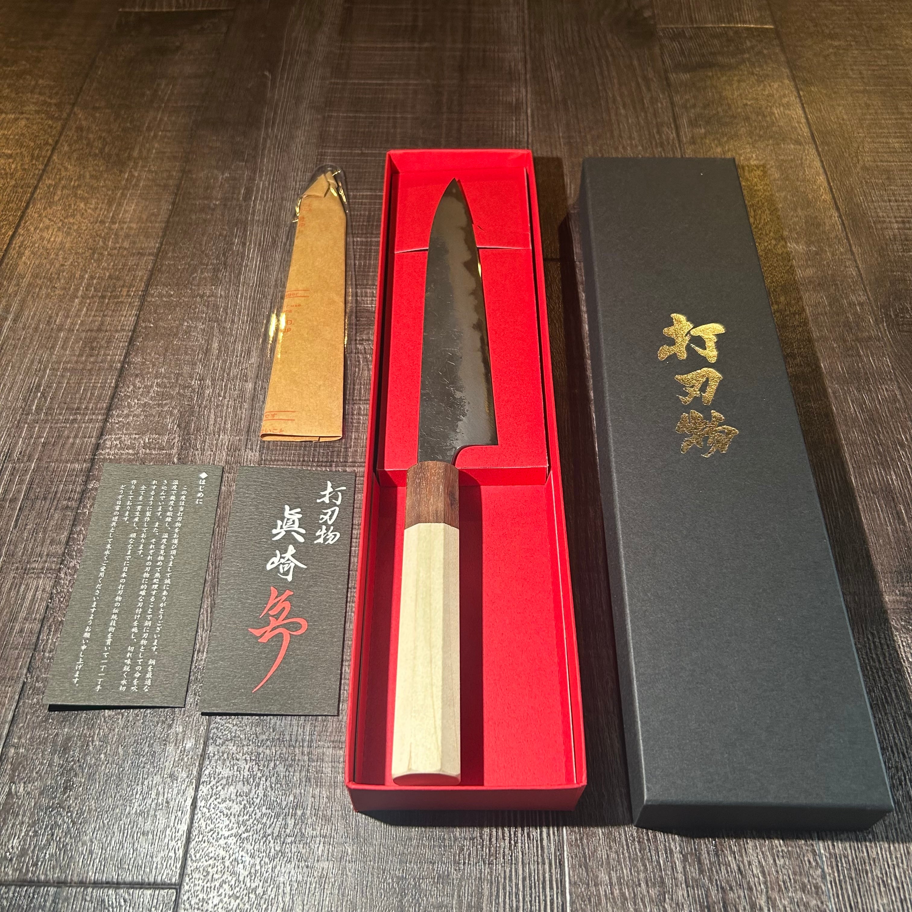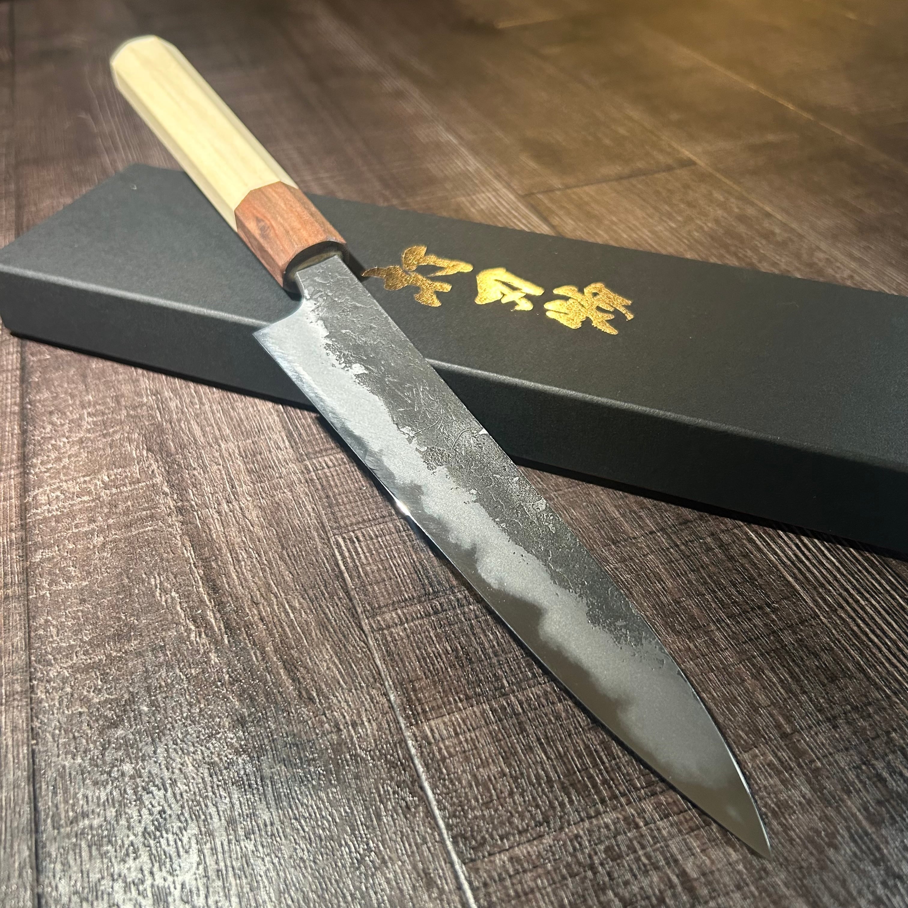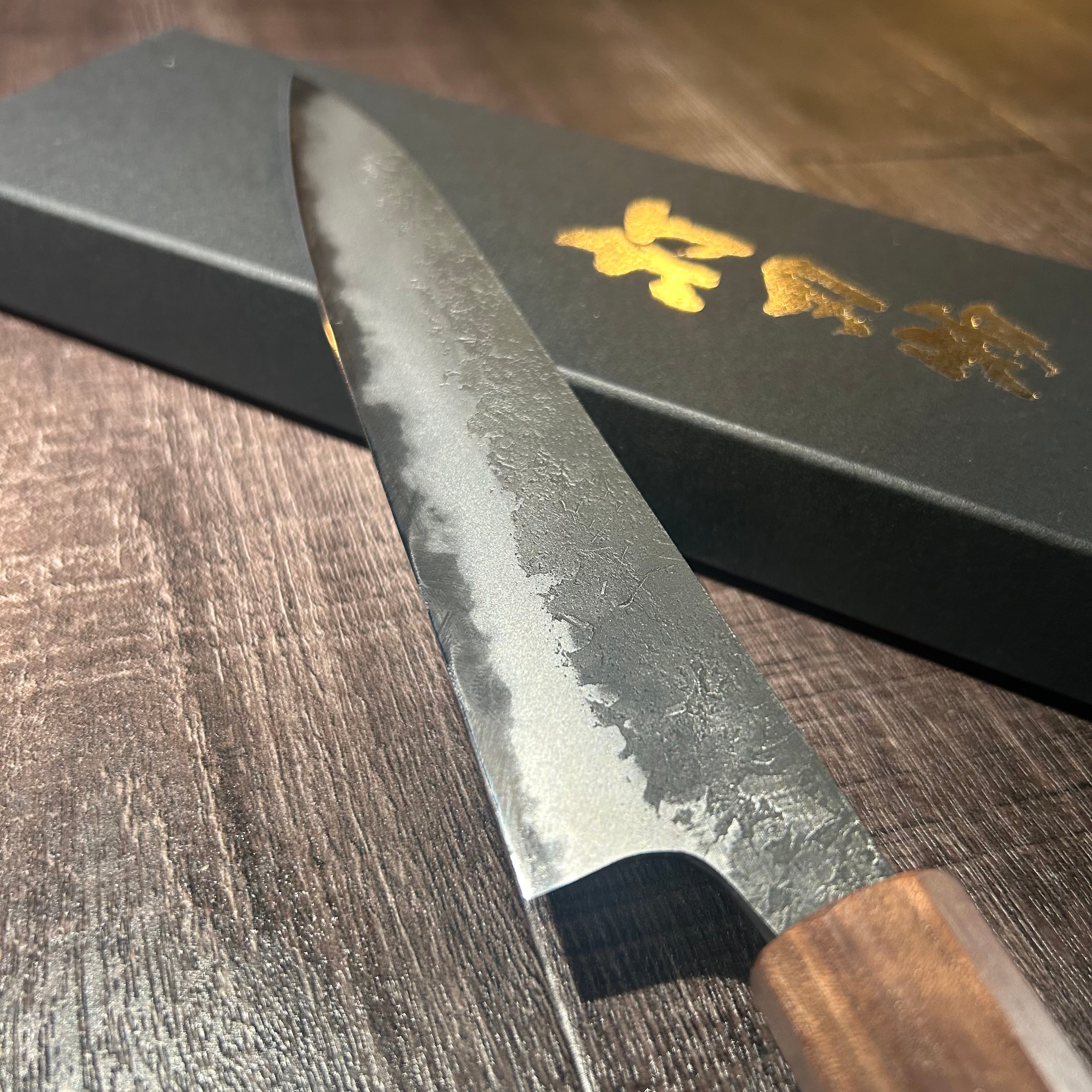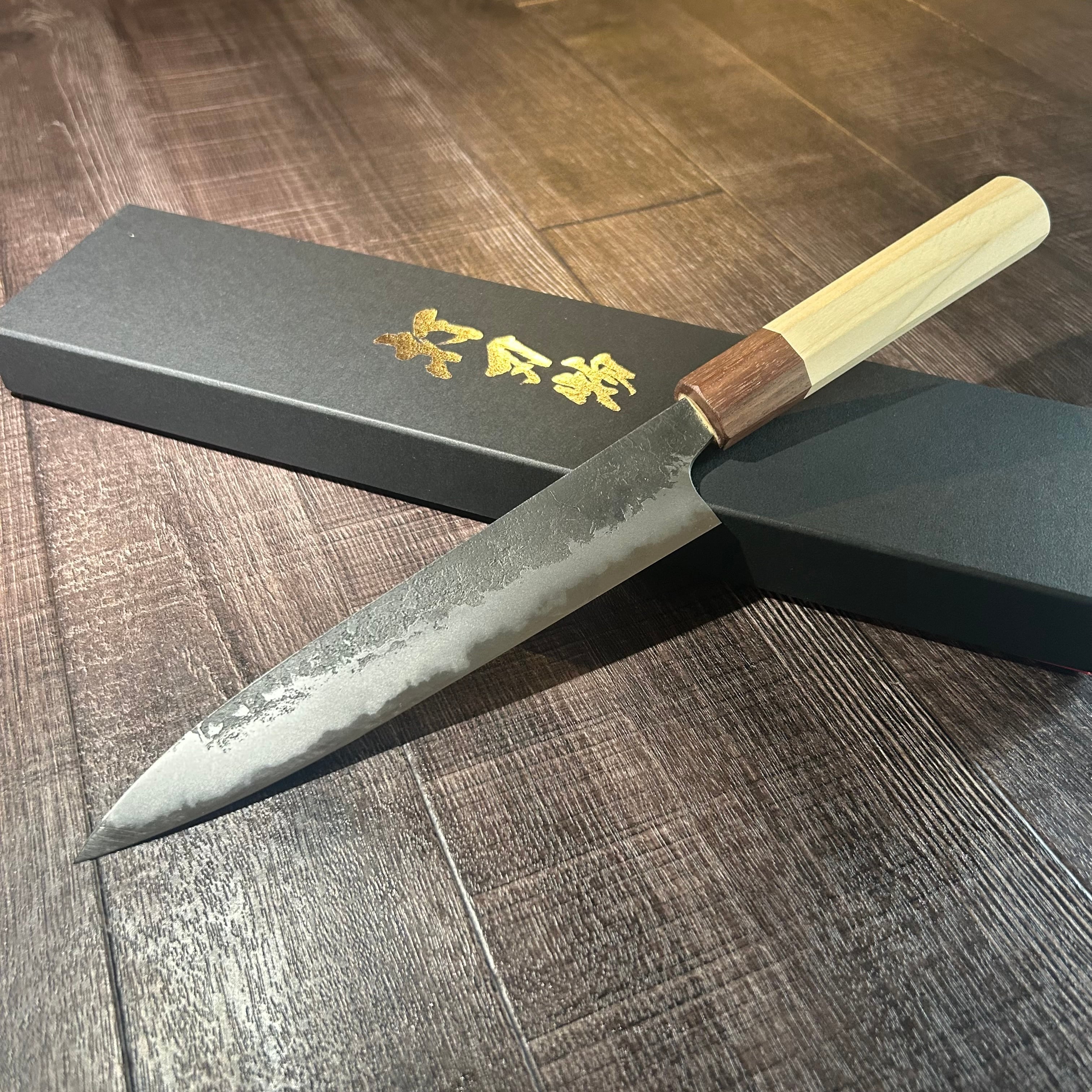This 180mm Black Nashiji petty knife is handcrafted by Mr. Naoki Mazaki, a young
