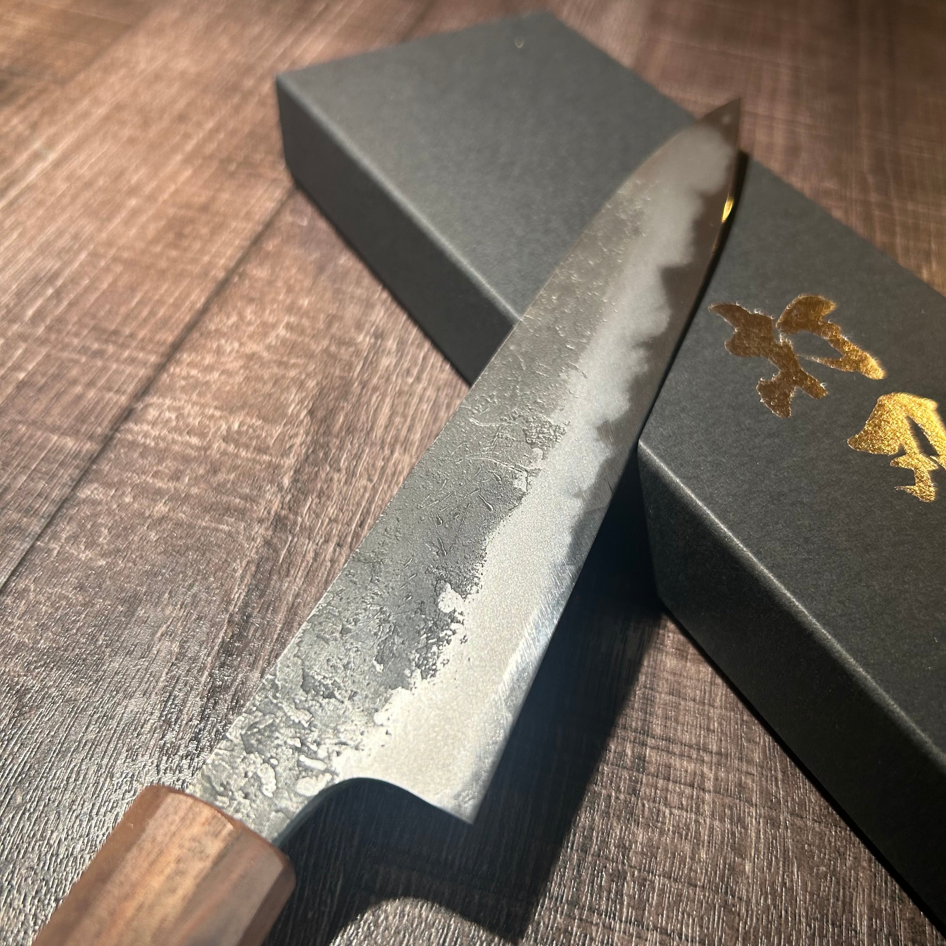While this knife is exceptionally sharp, it is also susceptible to rust. After use, please wash and thoroughly dry the knife to prevent rusting.